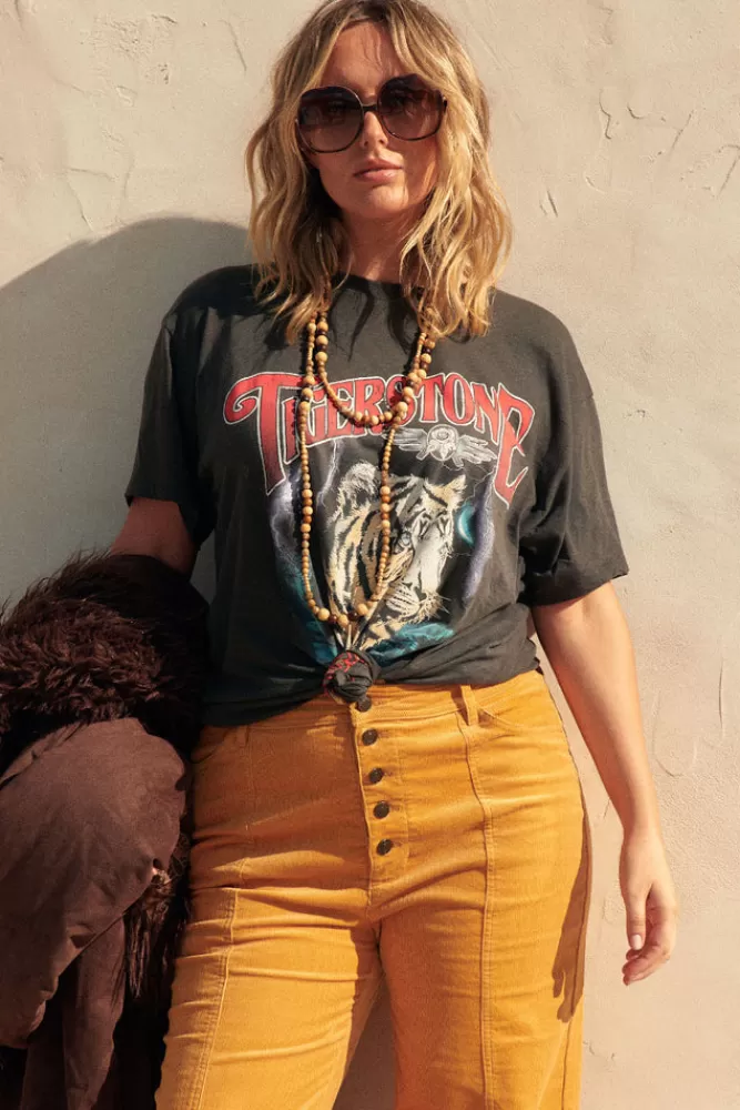 Our Buttery Soft Stormy River Biker Tee In Charcoal Is Part Femme, Part Rebel Rocker With Our Oversized Biker Silhouette And Hand Drawn Graphic Featuring A Tiger Peering From The Jungle, A Crescent Moon, And Lightning Storm. Quickly Becoming A Spell Team Favourite, Our Biker Tee Pairs Easily With Any Of Your Spell Skirts For Some Rock And Roll Glamour Or With Your Favourite Denim And Sneakers For Everyday Street Styling.- Crafted With 100% Organic Pima Cotton- Biker Tee Fit
