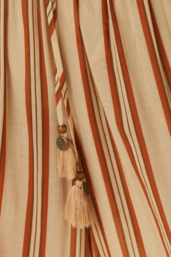 The Impala Lily Pant In Gold Exudes Off Duty Elegance. Our Pants Are Uber Comfortable With A Chic Wide Leg And Elastic Waistband And Feature A Floral Border Print At The Side Seam Adding A Touch Of Opulence To A Classic Stripe Print. Pair With The Impala Lily Shirt Dress For The Dreamiest Print On Print Combo Or With A Simple Tank And Tan Mules For Brunch With The Girls. Perfect For Vacay Styling, We See These As A Luxe Lounging Staple Or As The Perfect Throw On Piece For Exploring Cobbled Streets And Coastal Towns In Style. – Crafted With 50% Organic Cotton And 50% Lenzing™ Ecovero™ Viscose- Adjustable Drawstring Waist Tie With Tassels And Custom Charm- Side Pockets