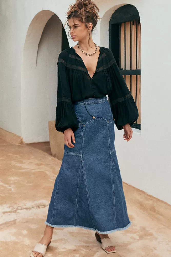 The Muse Denim Maxi Skirt In Inky Blue Is Crafted For Our 70’S Goddess Muse. A Timeless Style With A Modern Twist, Our…