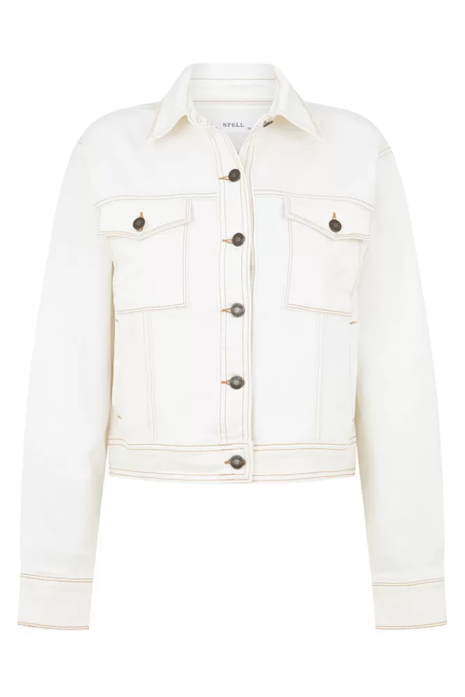 The Eve Denim Jacket Arrives In Two Fabrications And Two Different Colourways. This Jacket Stuns In Our Salt Colourway, A Boxy Fit In A Gorgeous Comfort Stretch Denim Our Jacket Is Cropped And Features Side Pockets And Front Pockets With Flaps. All Brass Buttons Are Spell Branded And Completely Functional. We See This One Paired With Our Eve Denim Jeans Or The Eve Denim Skirt And Heels For A ‘Relaxed Chic’ Look. A Timeless Piece, Our Jacket Is Designed To Pair Back With All Styles From Our Flora Collection And Throughout The Seasons For Years To Come. – Crafted With 99% Organic Cotton And 1% Elastane – Arrives In A Full Size Range
