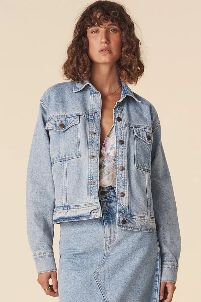 The Eve Denim Jacket Arrives In Two Fabrications And Two Different Colourways. This Jacket Exudes Effortless ‘Cool Girl’ In Our Sunwashed Blue Colourway. A Boxy Fit In A Rigid Denim Our Jacket Is Cropped And Features Side Pockets And Front Pockets With Flaps. All Brass Buttons Are Spell Branded And Completely Functional. We See This One Paired With Our Eve Denim Jeans Or The Eve Denim Skirt And Heels For A ‘Relaxed Chic’ Look. A Timeless Piece, Our Jacket Is Designed To Pair Back With All Styles From Our Flora Collection And Throughout The Seasons For Years To Come. – Crafted With 43% Lyocell 40% Recycled Cotton 17% Organic Cotton – Arrives In A Full Size Range