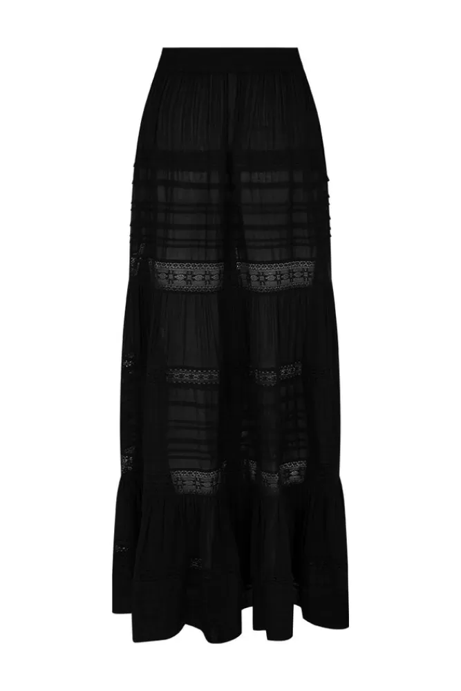 Timeless And Elegant The Teodora Maxi Skirt In Black Is Destined To Be A Forever Loved Heirloom. Crafted With Meticulous Attention To Detail, Our Skirt Features Delicate Pintucks Throughout Adding Volume And Movement To The Wearers Every Step. Unlined And Delicately Sheer, The Teodora Maxi Skirt Includes A Layered Lace Tier At The Top For Extra Coverage And Sheer Inserted Lace At Each Tier Cascading To The Hem. Capturing The Attention Of Admirers In Any Room, We Imagine Our Skirt Paired With The Teodora Cami, Fine Jewels And A Simple Slide For Effortless Island Goddess Glamour. – Crafted With 50% Organic Cotton And 50% Lenzing™ Ecovero™ Viscose – Unlined And Intentionally Sheer- Flat Front Waist And Elasticated Back Waist