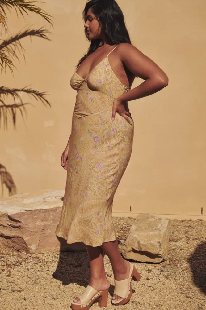 Our Belladonna Bias Strappy Midi Dress In Dusty Olive Offers Relaxed Elegance In Gold And Dusty Green Hues. Perfectly Fit To The Female Form, Our Strappy Features Delicate Adjustable Straps, Soft Gathers Under The Bust With A Flattering Diamond Cut At The Waist. Slip In With The Invisible Zip And Feel This Luxe Fabric Float Over The Curves Perfectly Molding To Your Shape With The Bias Cut. We Imagine This One Worn With Layered Accessories And Combat Boots For Some Rock And Roll Glam Or With A Tan Mule And Shoulder Bag For Date Night. – Crafted With 100% Lenzing™ Ecovero™ Viscose – Invisible Zip At Side – Adjustable Straps