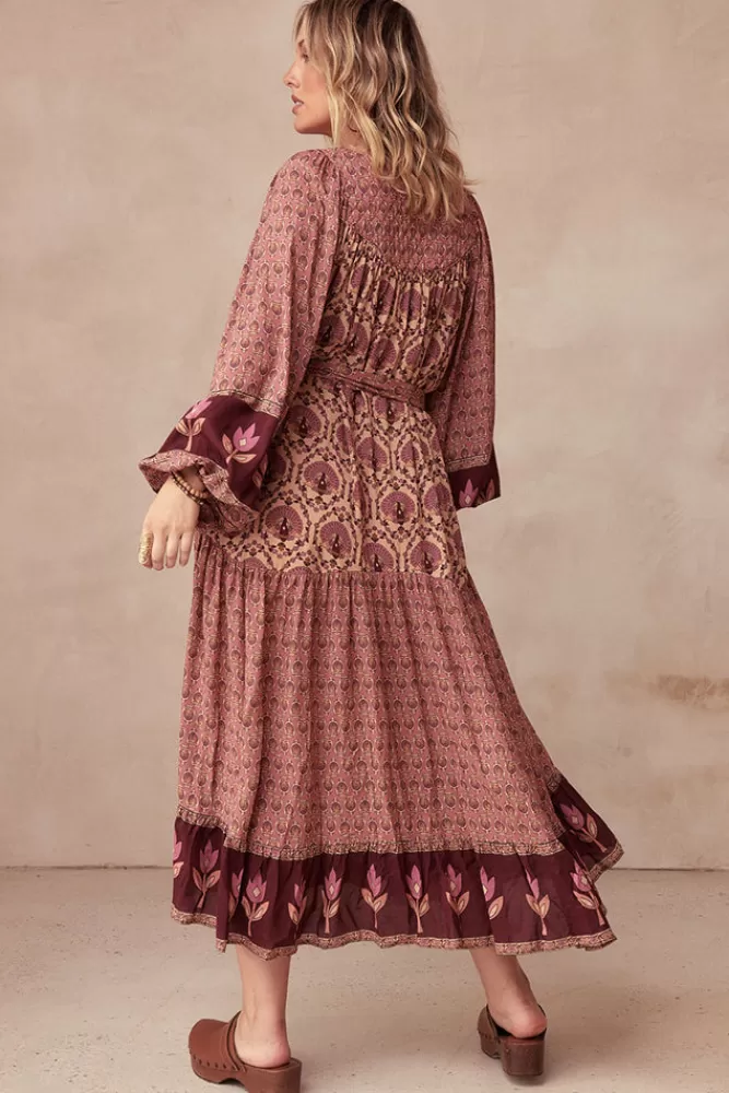 The Château Boho Gown In Grape Is Crafted For The Wild And Wanderlust. Arriving In Dreamy Hues Of Deep Purple, Smokey Pinks And Honeyed Amber Our Gown Is A Visual Masterpiece. Our Gown Features A Quilted Yoke, Neck Ties With Tassels And Custom Beads, A Captivating Curved Tier Detail And A Detachable Tie Belt For Styling Versatility. Awaken Your Inner Goddess In Our Newest Boho Gown With Fine Jewels And A Tan Mule For That Dinner By Candlelight At The Château. – Crafted With 70% Lenzing™ Ecovero™ Viscose 30% Refibra Lyocell- Unlined For Easy Wear – Coconut Button Down Front
