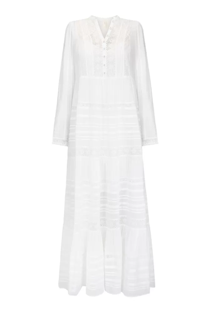 The Teodora Gown In White Has A Timeless And Otherworldly Allure. A Voluminous Silhouette Creates An Ethereal Aesthetic For The Wearer, Complimented With Intricate Lace Inserts And Delicate Pintucks Throughout. Chic And Effortless With A Flat Front Waist And Elasticated Back Waist Our Gown Is Perfect For Hot Nights Strolling Cobbled Streets Hand And Hand With Your Lover. Wear With A Belt And Knee High Boots For The Ultimate Bohemian Goddess Vibe Or With A Tan Mule And Fine Jewels For A Sunset Soiree By The Ocean. – Crafted With 50% Organic Cotton And 50% Lenzing™ Ecovero™ Viscose – Includes A Detachable Cotton Slip- We Recommend Sticking True To Size Or Upsizing If You Have Broad Shoulders.